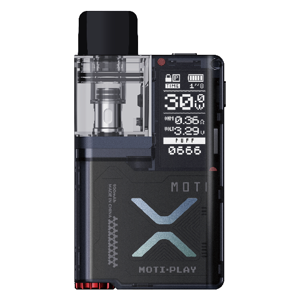 El MOTI Play Pod Kit está diseñado pensando en la comodidad y la simplicidad. Su diseño ergonómico se adapta perfectamente a tu mano y su tamaño compacto te permite llevarlo contigo a donde quiera que vayas, sin ocupar mucho espacio. Su pantalla de 0.96 pulgadas ofrece la posibilidad de controlar todos los parámetros: potencia, voltaje y caladas. Este dispositivo de vapeo cuenta con una batería 900mAh de larga duración, lo que significa que podrás disfrutar de tus vapeos durante todo el día sin preocuparte por quedarte sin energía.